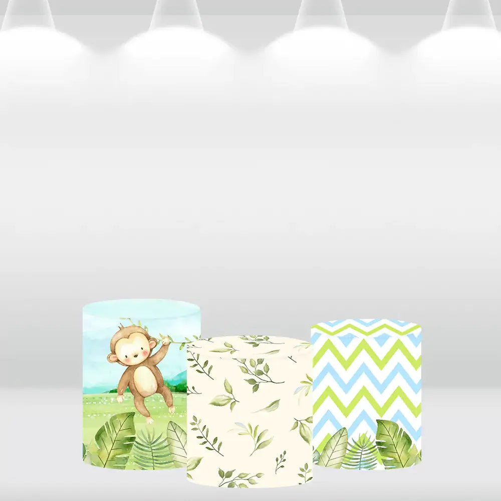 Safari Birthday Decorations for Boy Round Backdrop Cover Jungle theme Party Supplies Background Cartoon Animals Arch Wall
