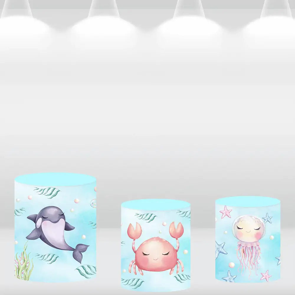 Underwater World Shark Fish Round Circle Backdrop for Photography Sea Ocean Dolphin Newborn Baby Birthday Party Background Decor Photo Studio