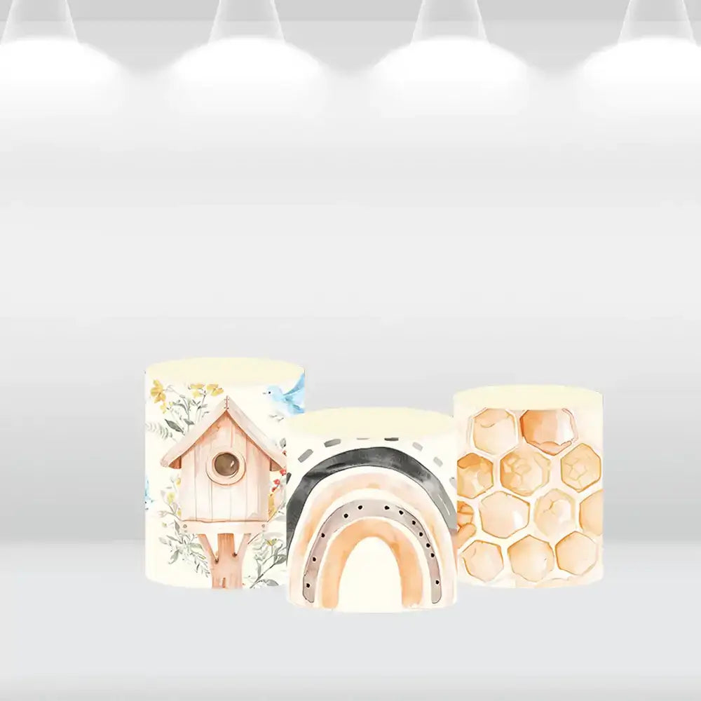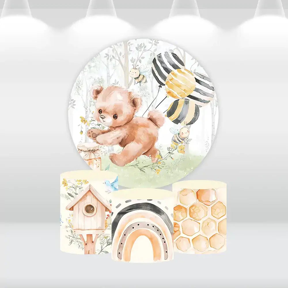 Watercolor Bee Bears Honey Baby Shower Round Arch Backdrop Cover Forest Bear 1st Birthday Circle Background Cake Table Banner