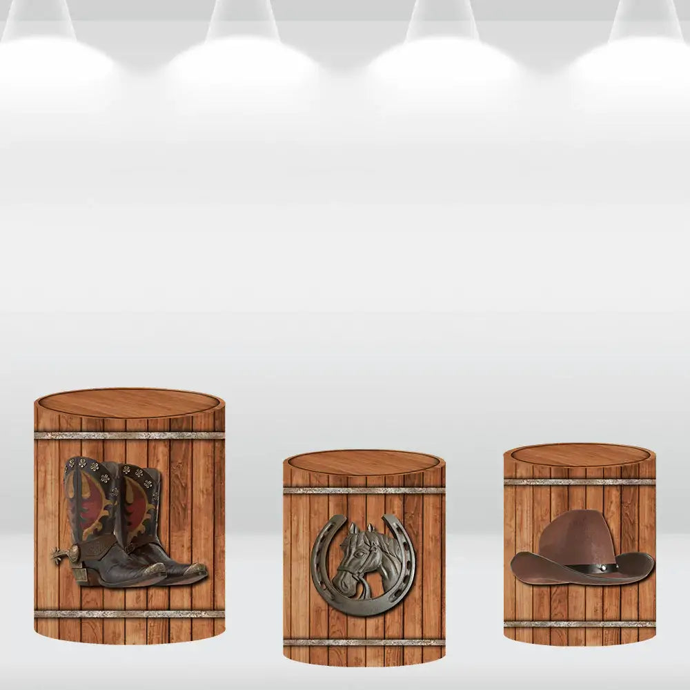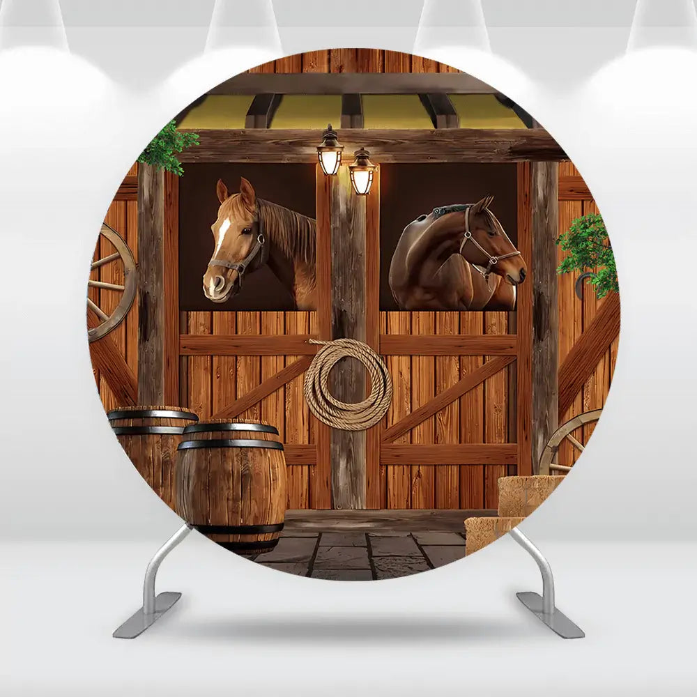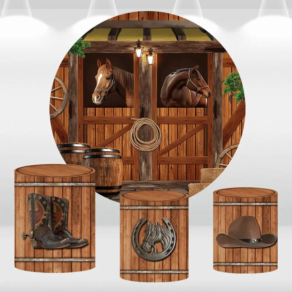 Western Cowboy Round Circle Backdrop Cover Rustic Farm Wooden Barn Door Birthday Photo Background Candy Table Cylinder Covers